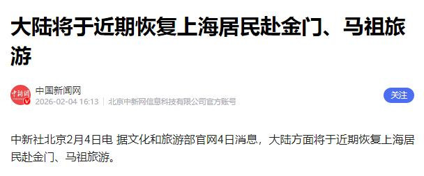 更值得注意的是,在论坛结束次日(2月4日),大陆宣布将恢复上海居民赴金门、马祖等地旅游。