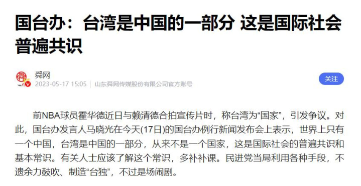 正如外交部所强调:“主权和领土完整不容交易,台海问题没有模糊空间。”
